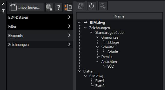 Der strukturierte Zugriff auf die Pläne erfolgt über den BIM-Navigator, eine Palette, die den innovativen Zugriff auf Modelle, Zeichnungen und mehr bietet.